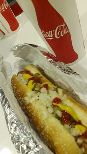 フードコートで、定番のホットドックを購入。